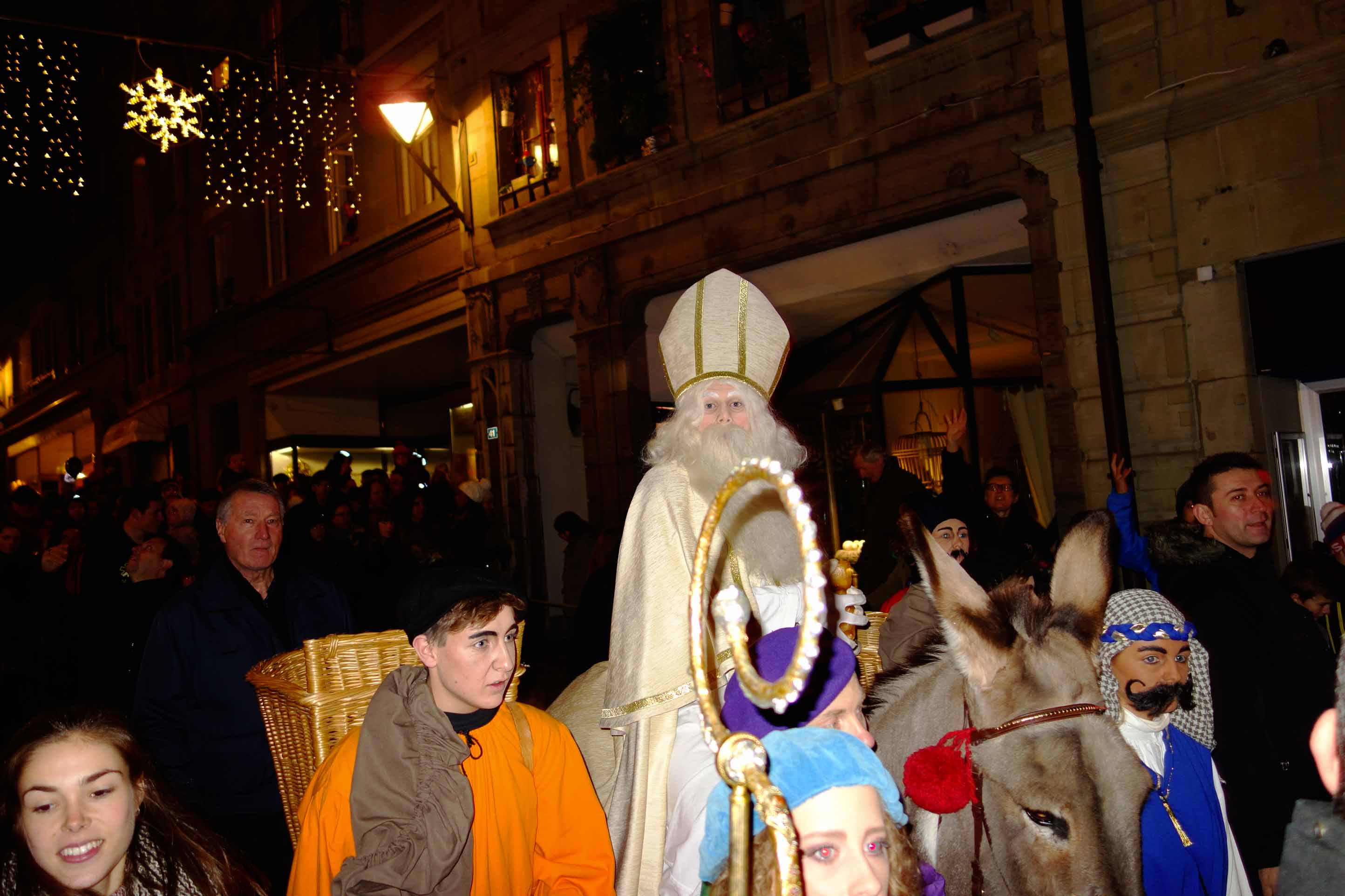 Quelle joie de vous retrouver dans ma belle ville de Fribourg. Nous voilà tous réunis, une nouvelle fois, petits et grands devant ma somptueuse cathédrale. Admirer toutes vos frimousses souriantes m’emplit de bonheur. L’air de Fribourg est tellement pur et tellement vivifiant. Prenez soin de ne pas le polluer, faites comme moi, employez la seule véritable voiture du peuple : un âne ! C’est le meilleur véhicule utilitaire. Cette année encore, mon âne Babalou m’a accompagné lors de mes périples. Et même si parfois quelques flatulences lui échappent, il réussit tous les contrôles anti-pollution sans sournoiserie et cela même avec une charge maximale de biscômes.